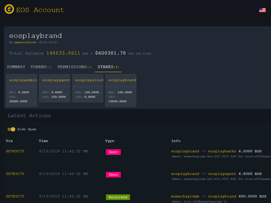 EOS congestion 9/13/2019 and EOSPlay hack